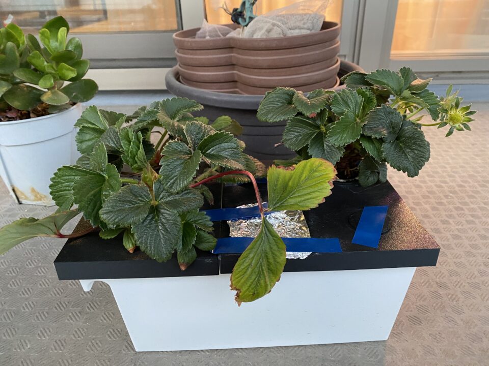 苗で買って一年目の収穫を終え、ランナーでひたすら増やした中から一部を水耕栽培にしてベランダで成長させました。水耕栽培のポットは、自分で作成。