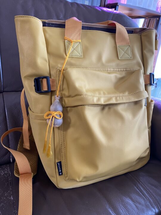 リュックにつけてみました。かごバッグにも!一緒にお出かけもできま~す。